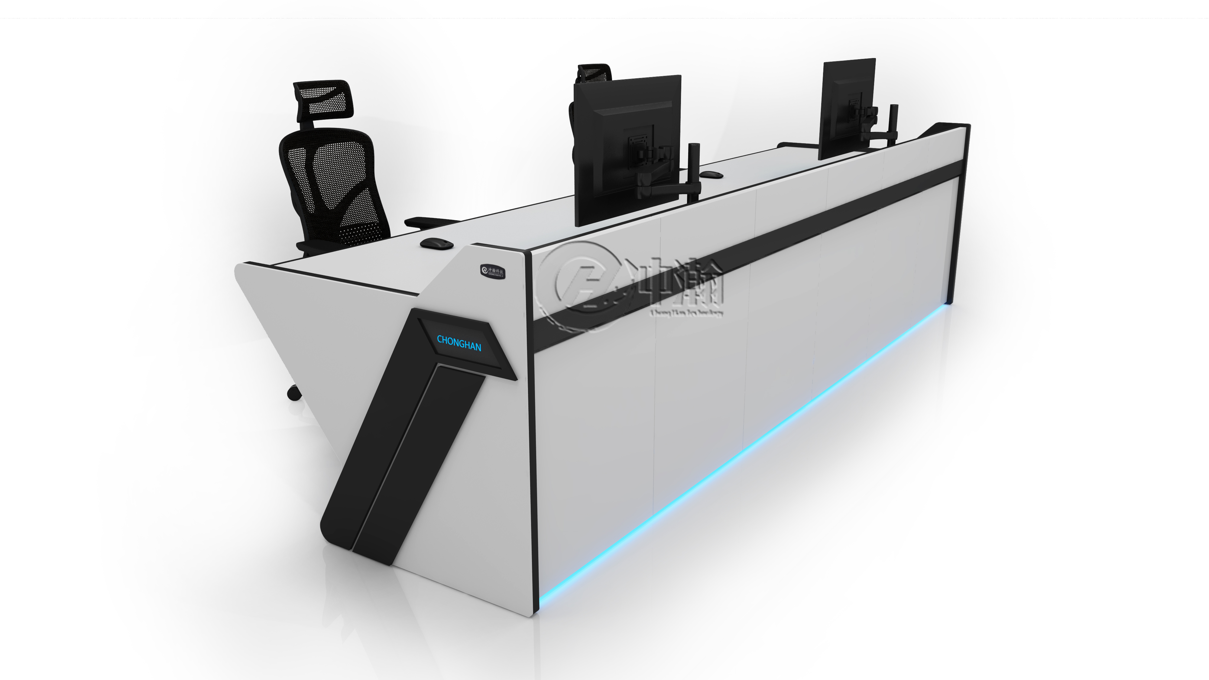 控制台内部有专门的走线槽,进行专业的线网管理,具有国际化的时尚造型,美观高雅。