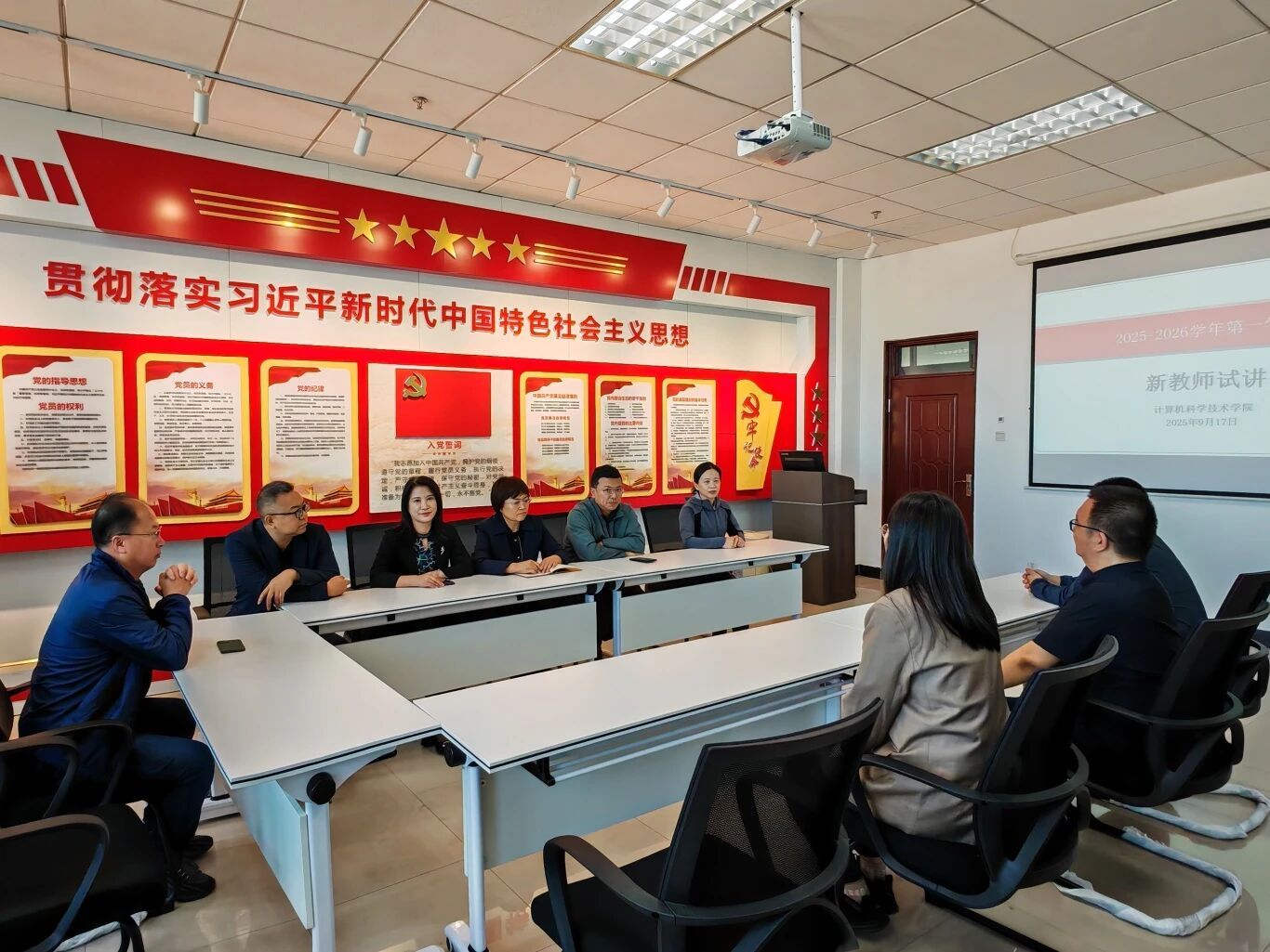 2025年9月17日,学院在综D501会议室组织2025年新入职教师试讲。学院党委书记李纯莲、院长赵剑、副院长王薇、副院长徐大伟及指导教师于秀霞、王艳柏出席会议,2025年全体新入职教师参与本次试讲。