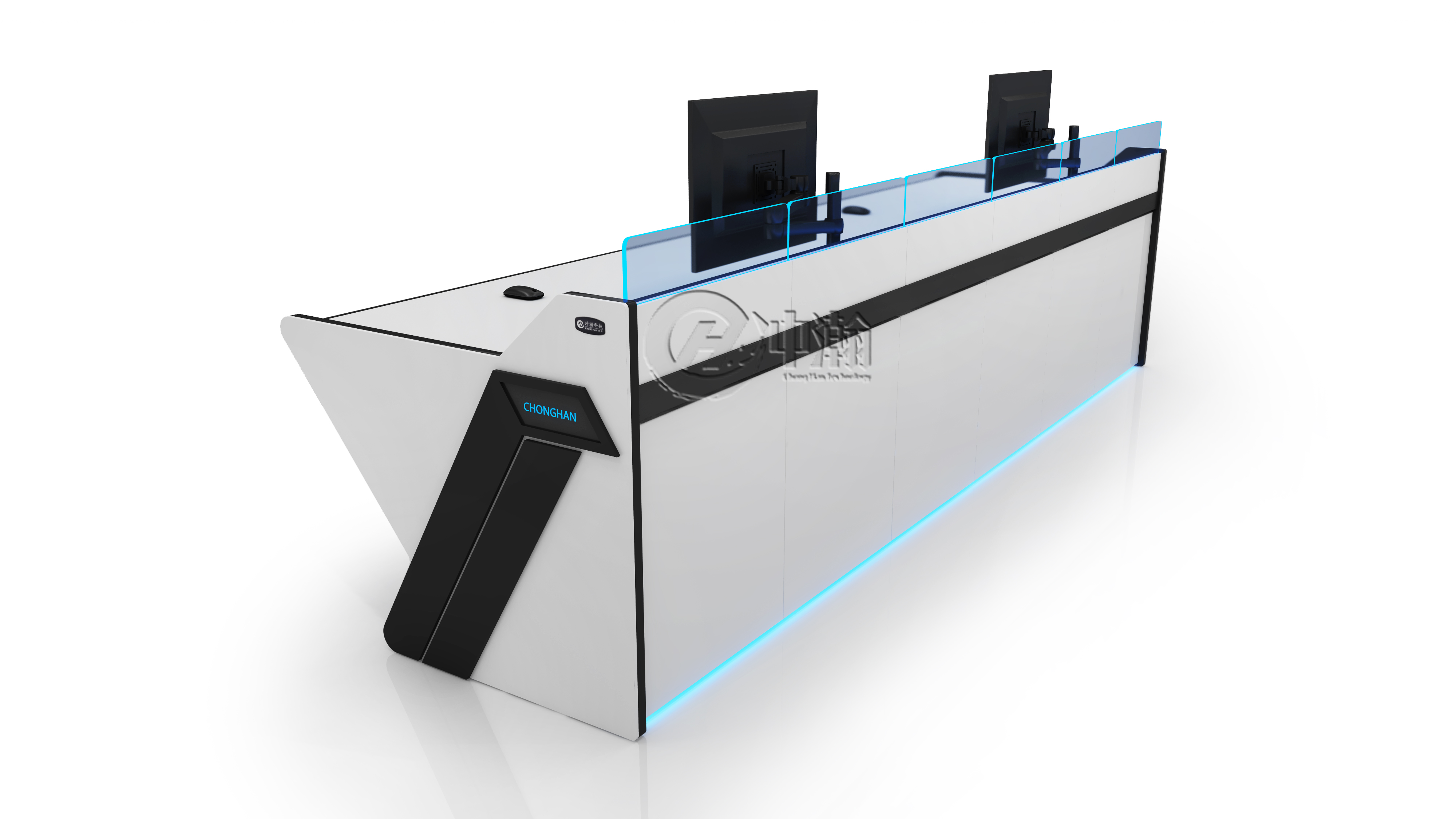 控制台内部有专门的走线槽,进行专业的线网管理,具有国际化的时尚造型,美观高雅。
